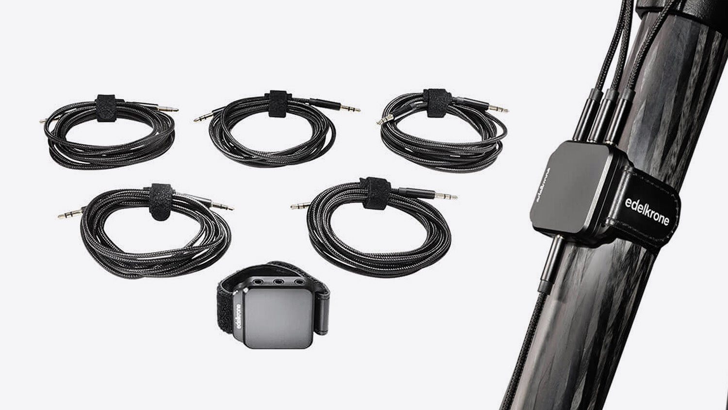 edelkrone Controller includes the Wired Signal Hub. The hub comes with the necessary cables, and it allows you to interconnect all devices that have link ports and edelkrone Controller together.