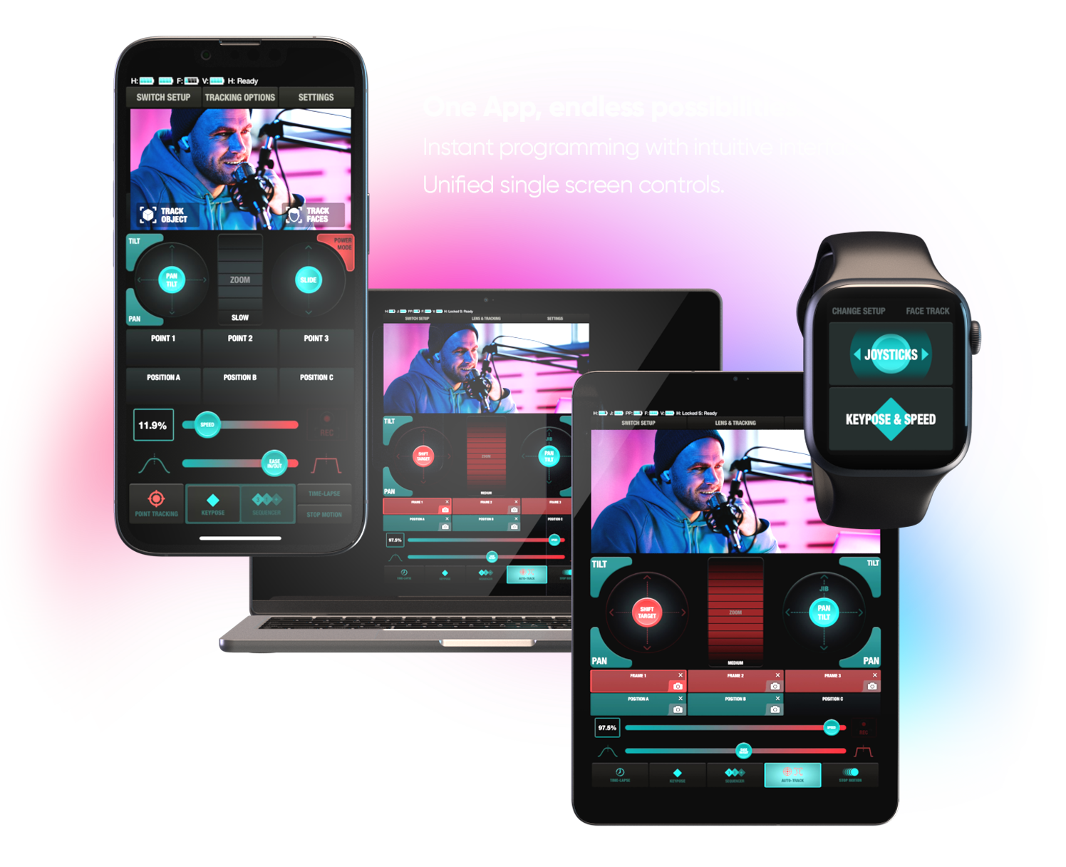 To control from a phone, tablet, watch or Mac (with M processor) use edelkrone App.